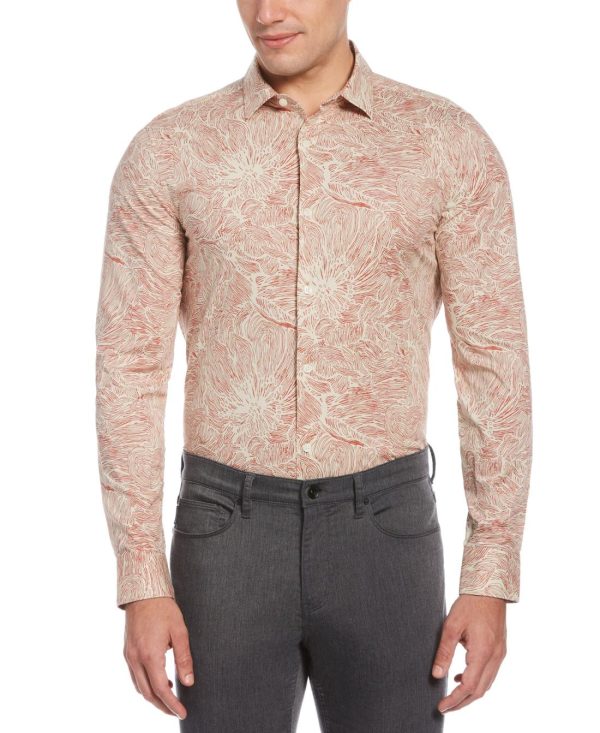 Printed with a detailed sketch of flowers, this Perry Ellis men’s long sleeve shirt is perfect for days when you want to set your style apart from the pack. It’s crafted from a durable plain weave fabric, with added stretch for a flexible fit. The long sleeve top is finished with a slim collar for a sharp modern look.