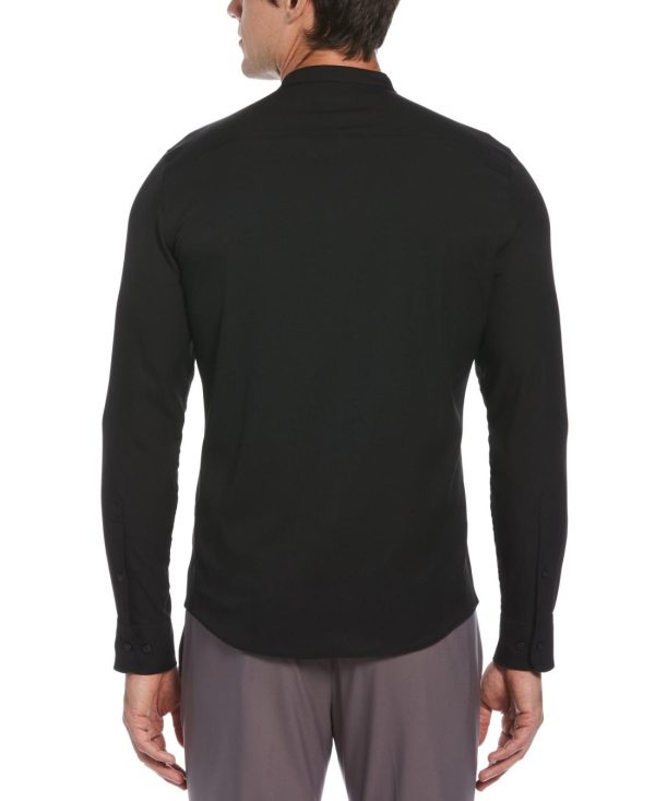 Featuring a sleek banded collar and designed to be worn untucked, this Perry Ellis white button-down shirt is great for a relaxed, casual look. The men’s long sleeve shirt is crafted from a moisture wicking, lightweight twill fabric perfect for helping you stay cool and dry in the warmer months. Total Stretch lets you move freely in any direction, so you can enjoy each busy day in comfort.