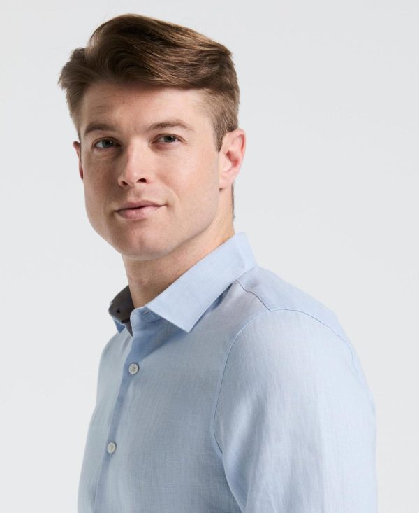 Update your everyday or office wear with this long sleeve button-down shirt from Perry Ellis. Featuring durable plain weave fabric and a solid color design, this linen shirt offers versatility and lasting wear, making it a great choice for smart-casual outfits. The polished spread collar keeps your look on point.