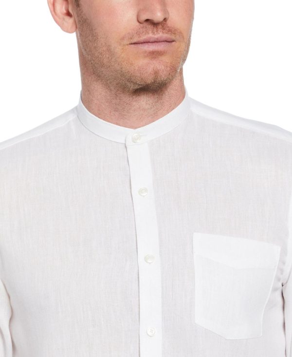The Untucked Shirt | Men Perry Ellis Slim Fit Banded Collar Rolled Sleeve Shirt