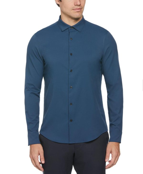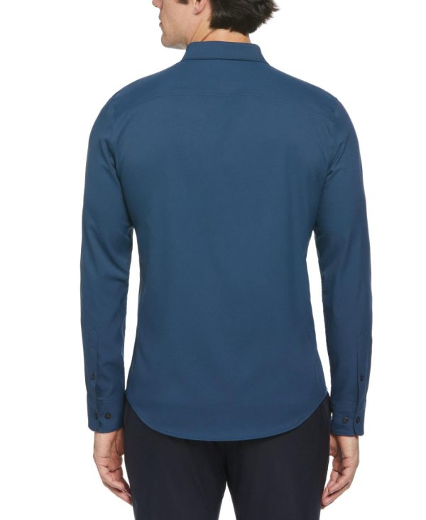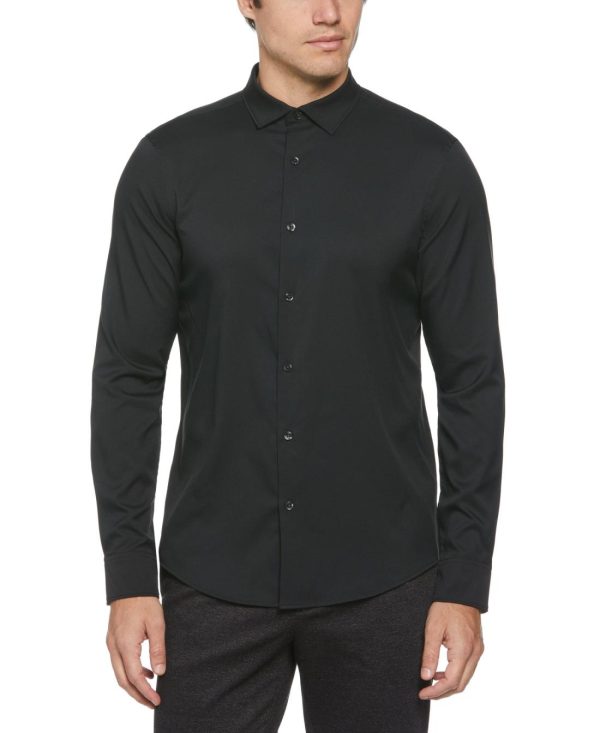 Experience a blend of style, comfort and functionality with this men’s black button-down shirt from Perry Ellis. The tailored fit and shorter hem that’s designed to be worn untucked offers a refined casual look that elevates your everyday style. Crafted with twill fabric that includes stretch, this long sleeve button-down shirt offers comfort and mobility while moisture-wicking ensures a dry and cool feel all day.