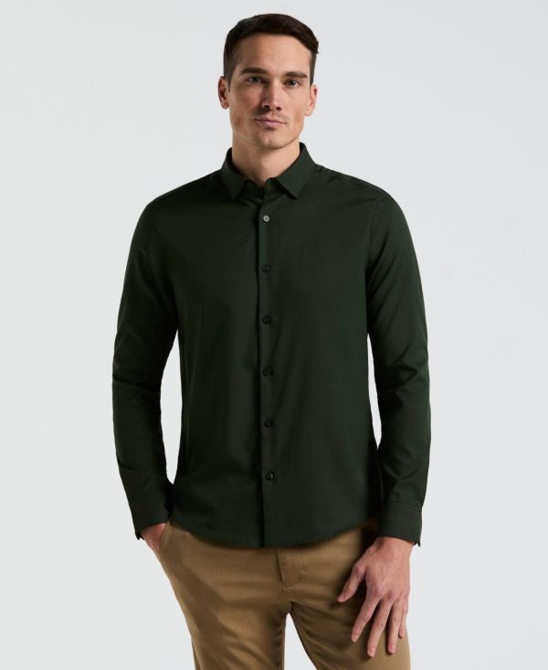 Crafted from lightweight twill fabric in a classic solid color, this long sleeve button-down shirt from Perry Ellis is a comfortable and versatile addition to any wardrobe. The men’s button-down shirt features a smart point collar and a shorter hem that’s designed for wearing untucked. Added stretch allows for a flexible fit that moves with you and the slim fit creates a clean, contemporary silhouette.